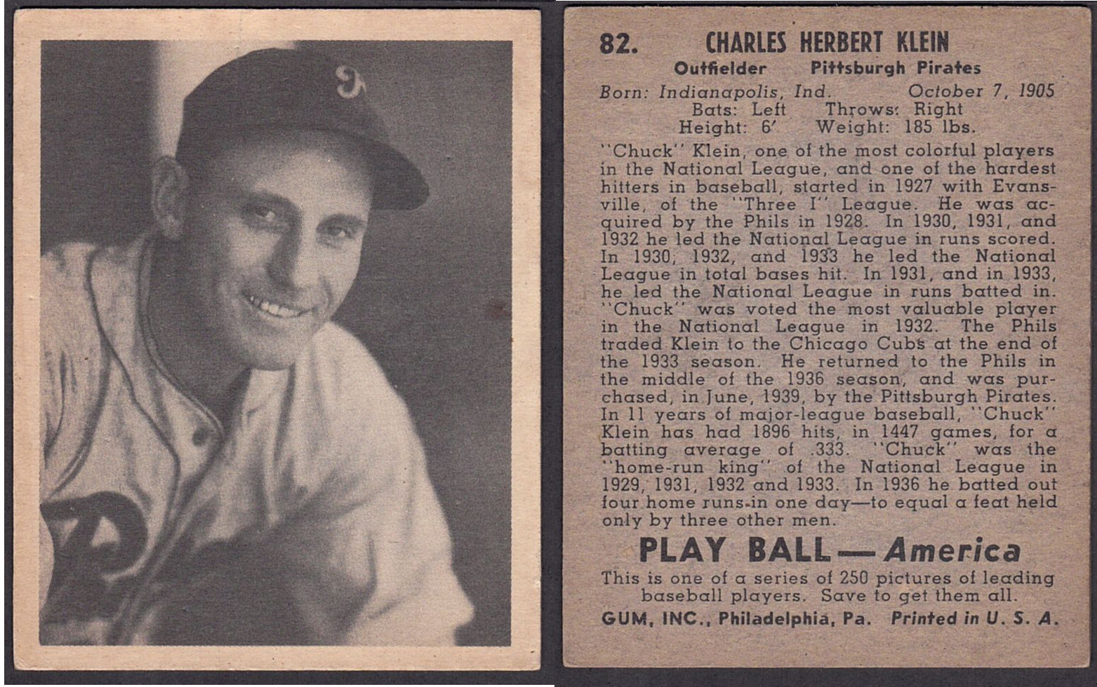 ![]() 1939 #7 Bobby Doerr Price-$old | ![]() 1939 82 Chuck Klein Price-$old |