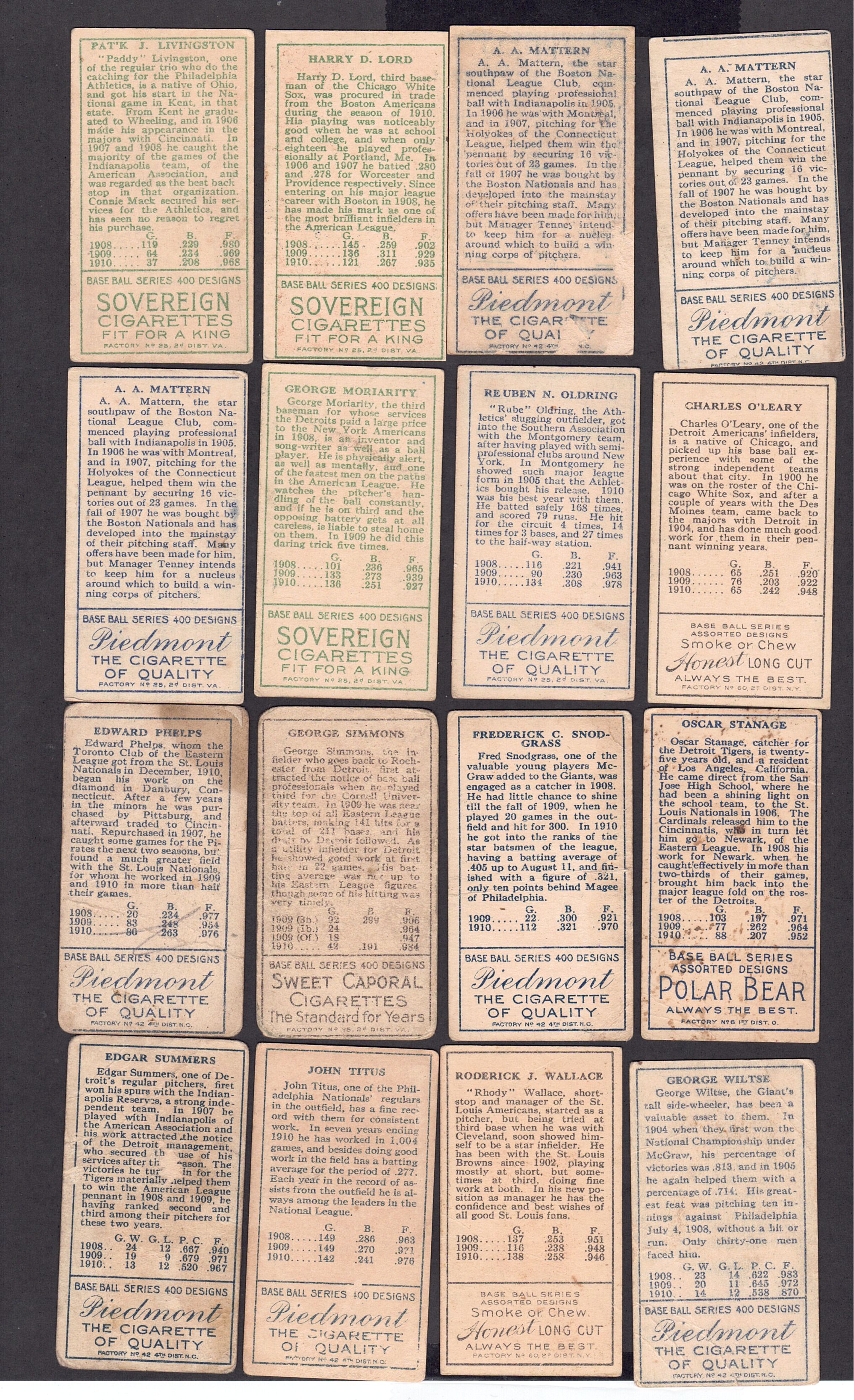 Livingston Lord Mattern Mattern Mattern Moriarty Oldring O'Leary Phelps Simmons Snodgrass Stanage Summers Titus Wallace-w/ cap Wiltse-one ear |