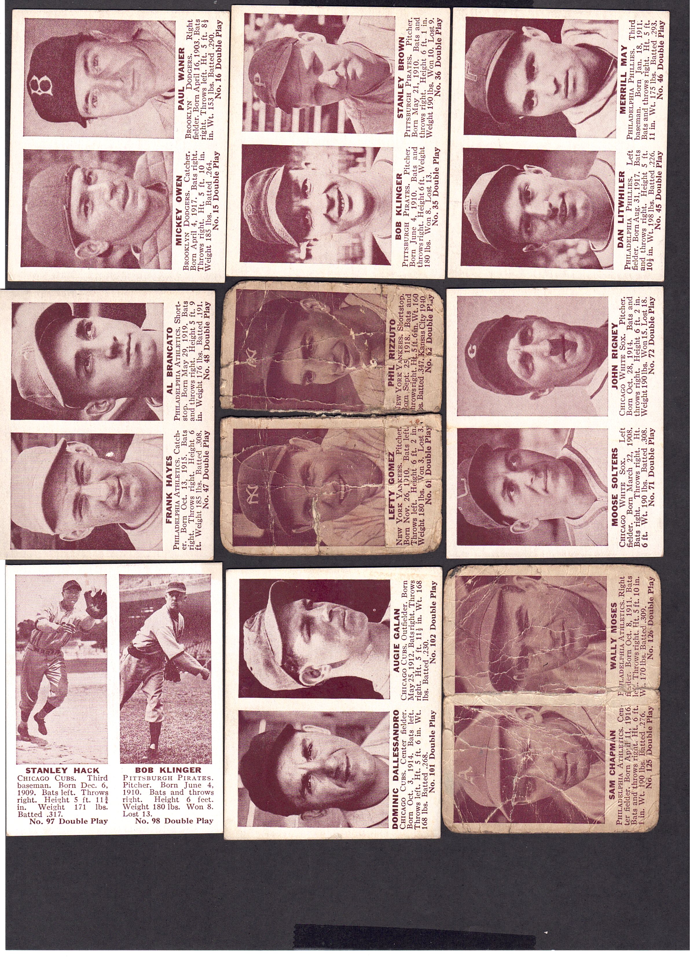$25 $25 $75 $90 $40 $75 $25 $25 $40 $90 $old $75 $50 $50 $15 $90 $75 $40 $75 $old | 1941 Double Play #15/16 Owen P. Waner #35/36 Klinger/Brown 45/46 Litwhiler/May #47/48 Hayes/Broncato #61/62 Gomez/Rizzuto #71/72 Solters/Rigney #97/98 Hack/Klinger #101/102 Dallessandro/Galan #125/126 Chapman/Moses |