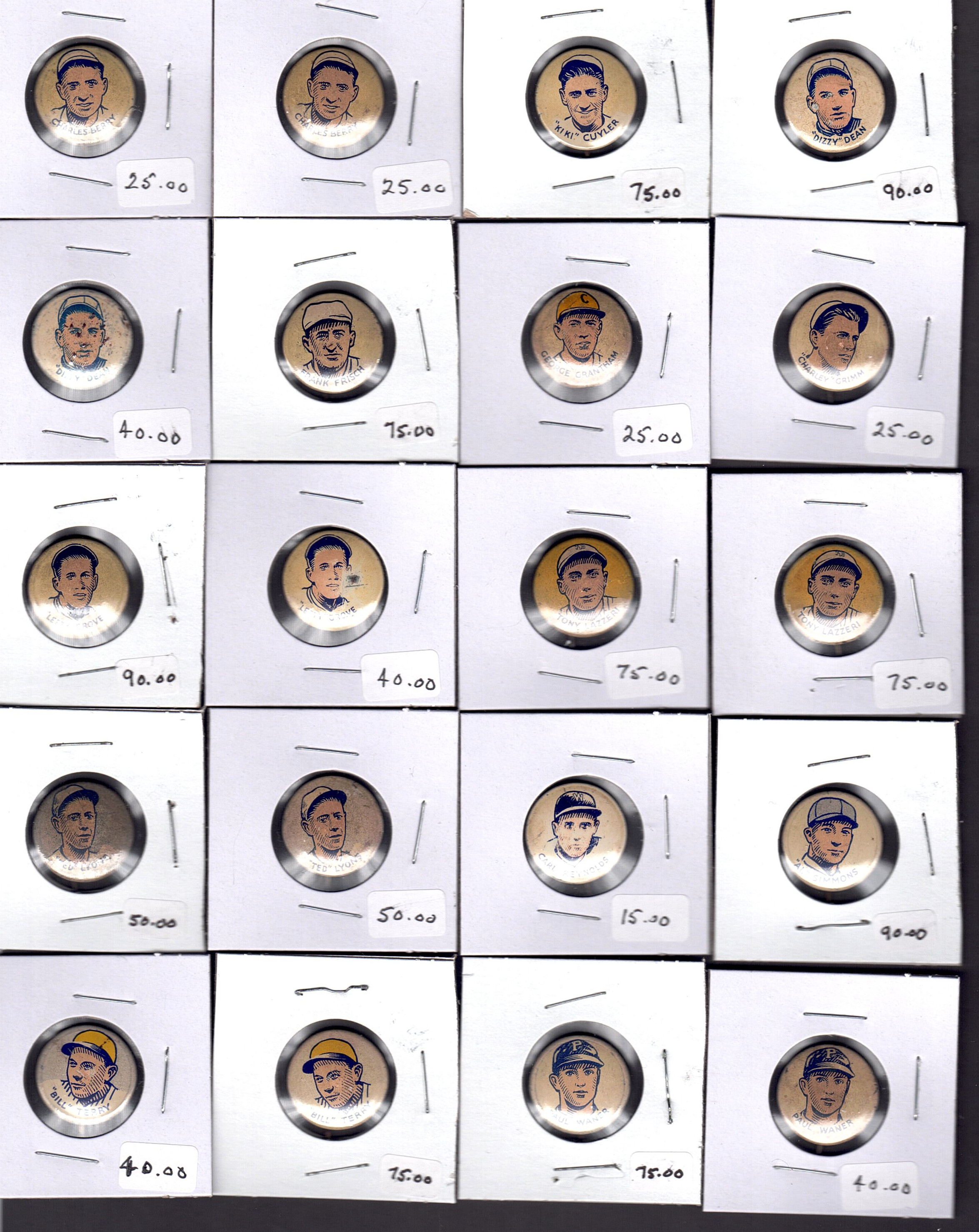 1930 PR4 Cracker Jack pins Berry Berry Dean Dean Frisch Grantham Grimm Grove Grove Lazzeri Lazzeri Lyons Lyons Reynolds Simmons Terry Terry Waner Waner |